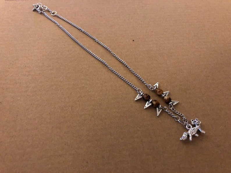 Fox totem forest spirit animal silver charm and tiger's eye crystal gemstone bea